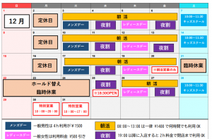 毎月スケジュールや毎週のお得なプログラムなどの情報があります